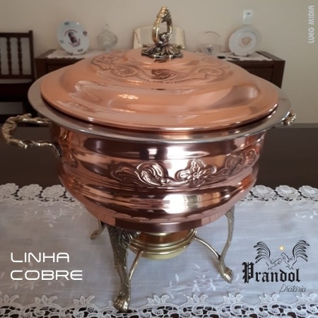Rechaud para carnes e massas , banho Maria, 45 cm de altura e bandeja em aço inox aonde vai a comida com 45 cm de diâmetro.