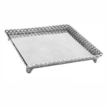 Bandejas espelhadas quadradas com grade trabalhada, medindo 40 x 40, 30 x 30cm.