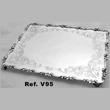 Composto por 2 bules, 1 leiteira, 1 manteigueira e 1 açucareiro, bandeja com 40cm de diâmetro – liso