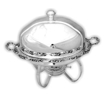 Rechaud bola novo – 45cm de altura e badeja com 40cm de diâmetro, podendo ser lisa ou martelê